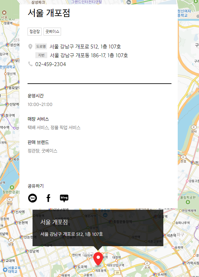 아래 그림을 클릭하면 위치 정보 사용을 허용하라는 메시지가 뜬다. 허용을 클릭하면 본인이 위치한 지역에서 가장 가까운 대리점을 자동으로 보여준다. 만약 보이지 않는다면 매장 찾기에서 매장명이나 본인이 살고 있는 '시나 구'를 적고 검색하면 가까운 매장의 이름 위치 그리고 전화번호 정보가 뜬다.
